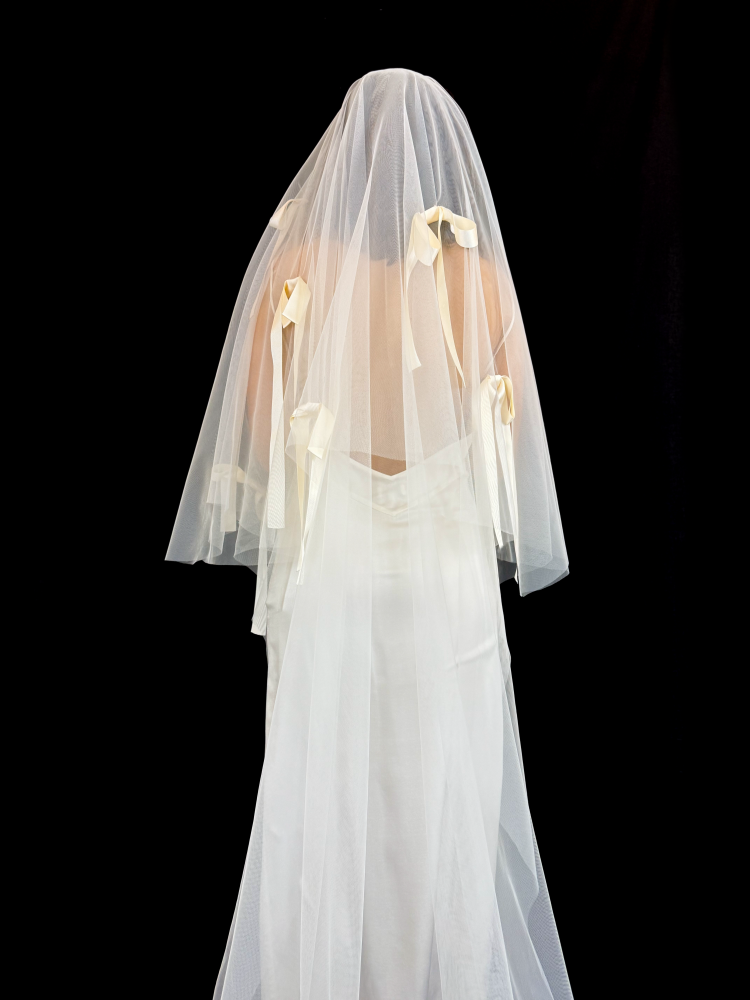 Hommage à l’aura captivante de Cate Blanchett, le voile “Cate B.” incarne une féminité audacieuse et contemporaine. Ce voile longueur chapelle, confectionné artisanalement, est orné d’un rabat délicatement décoré de nœuds en gros-grain. Alliant sophistication et modernité, il sublime la mariée d’une allure théâtrale et raffinée. Ce voile est la pièce idéale pour celles qui souhaitent marquer les esprits avec une déclaration de style unique et inspirée par une icône du cinéma mondial.